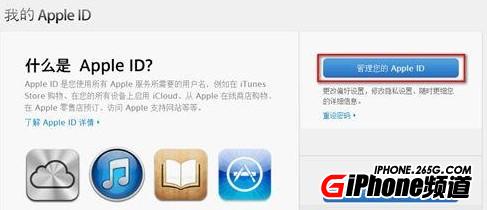 打開Apple ID管理頁面點擊管理您的Apple ID。