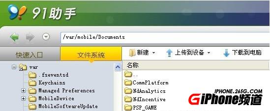 4. 確保可以正常打開PPSSPP模擬器後,接下來就是要將PSP游戲的.iso檔案轉到iPhone/iPad上。你可以使用91助手,連接iPhone/iPad後進入文件管理目錄var/mobile/Document