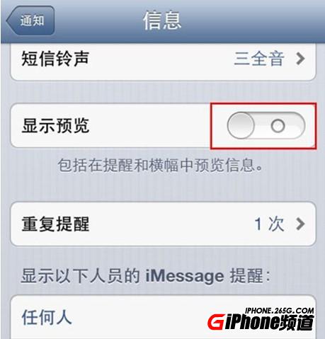 iPhone5如何隱藏短信提示 iPhone5的短信提示功能雖然好用但也有不方便的時候,比例如同事借用手機玩游戲的時候忽然朋友發來一條短信。這個時候你會恨透了短信提示功能,那麼如何隱藏短信提示保護自己的隱私呢?僅需在設置裡關閉提示功能即可。