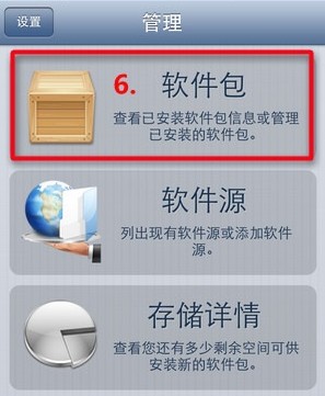 進入Cydia中,依次點擊【管理】—>【設置】
