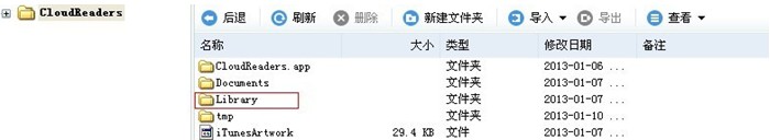 在itools中找到已安裝的cloudreaders目錄,點擊進入app的目錄