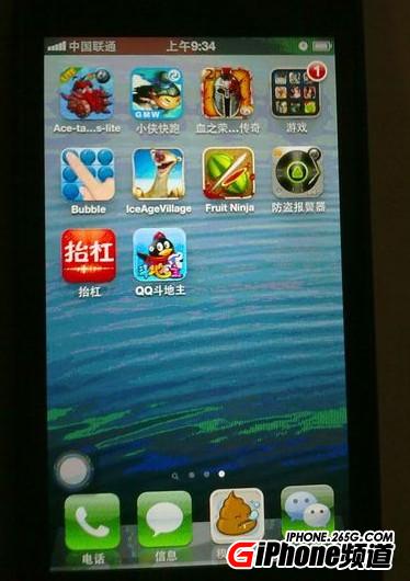 iPhone5花屏怎麼辦 剛買回的iPhone5花屏是怎麼回事呢?顯示圖標顏色完全不對,查看圖片顏色部分失真。出現iPhone5花屏首先要確認是硬件問題還是軟件問題。如果如下圖所示,進入任何軟件只有固定的位置顏色出現問題基本可以斷定是LCD出現問題。解決的辦法:嘗試通過軟件修復,或者把屏幕朝向枕頭或者柔軟物拍擊背部上方排線位置,有可能是屏幕排線松了。可以修好但不是長久之計。如果無效只能去蘋果維修點更換LCD。更多問題點擊265g蘋果站查看