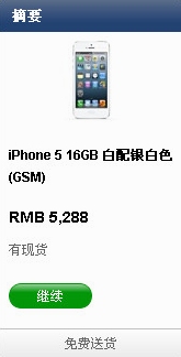 官網購買行貨iPhone5教程國行iPhone5今天上午7點正式開賣,之前蘋果官網就已經開始接受預定,但預定只能在蘋果零售店自提,沒有蘋果零售店的城市就享受不到預定的服務。現在蘋果官網正式開賣,免郵費送貨上門。還等什麼來看看下面在蘋果官網購買行貨iPhone5的流程吧。
