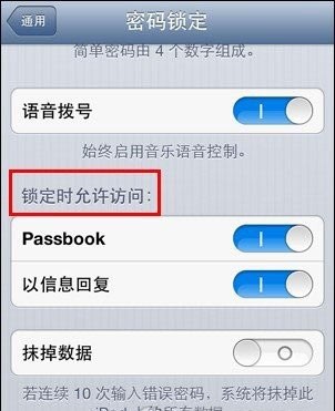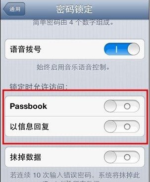 這樣,在密碼鎖開啟狀態下,手機上的Siri、回復信息等功能就將被禁止。
