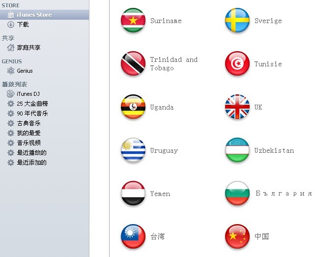 2、打開iTunes Store之後,開始選擇國家,將頁面拉到底端,選擇小圖標。