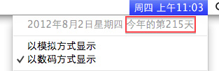 3)點擊菜單欄上時間顯示即可看到,比如今天是今年的第215天。