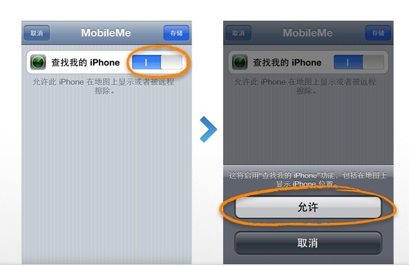 當尋找我的 iPhone 提示彈出時,輕點“允許”即可。