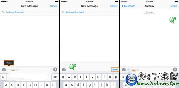 7.接下來前往信息應用中的對話框粘貼剛剛的 emoji 試試吧