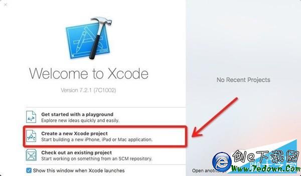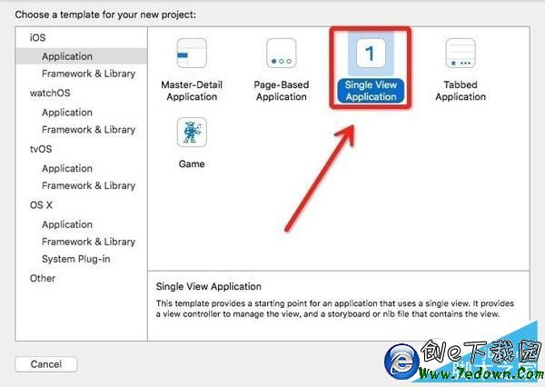 3、選擇“Create a new Xcode project”創建一個新的項目,然後選擇單視圖,點擊下一步。