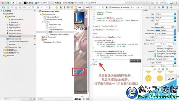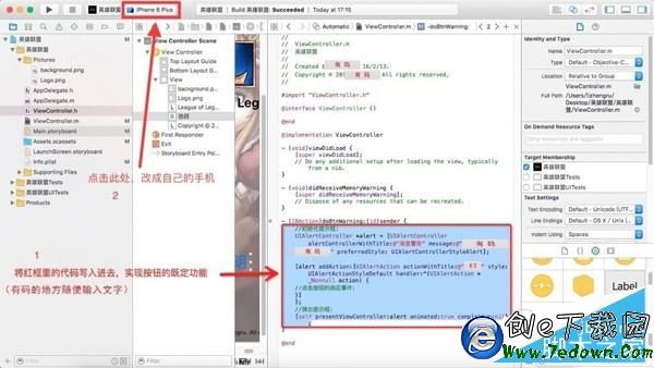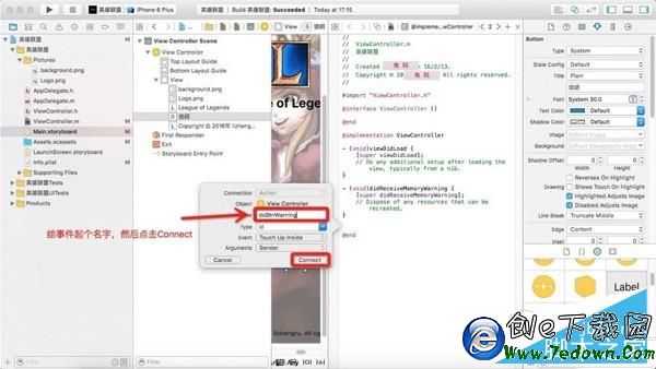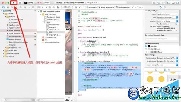 8、修改 ViewController.m 文件,賦予按鈕功能。