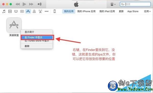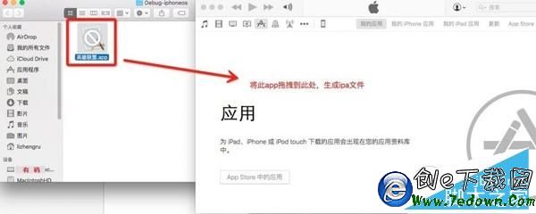 - 將找到的 XXXX.app 文件拖拽到打開的 iTunes 的“我的應用頁面”空白處,這樣就生成了最終的 XXXX.ipa 文件。