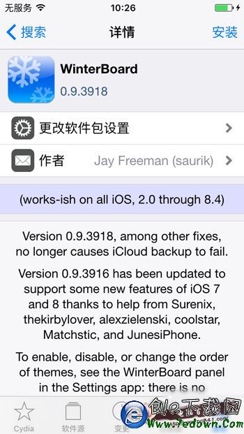 2.設備越獄之後,打開Cydia,搜索安裝主題美化插件【Winterboard】