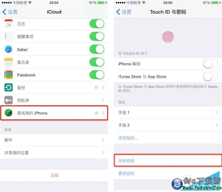 2. 越獄前務必在設備”設置”— ”TouchID與密碼”— ”關閉密碼”