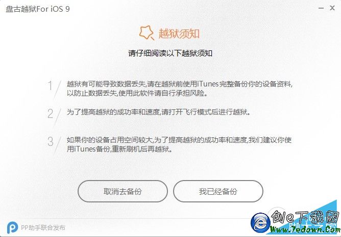 4. 請仔細閱讀【越獄須知】後,點擊【我已經備份】進入下一步