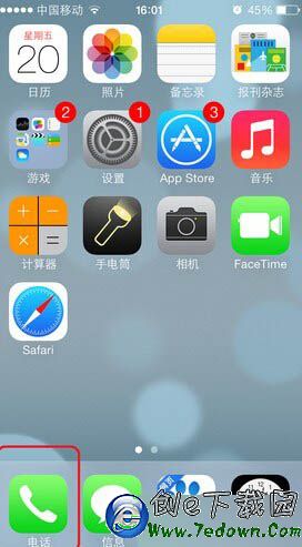 如圖所示點擊左下角紅圈進入“電話”選項。