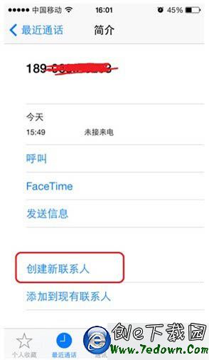 進入"i"選項後,點擊紅圈所示”創建新聯系人”,你可以把名字設置為“A”,這樣方便你快捷操作。