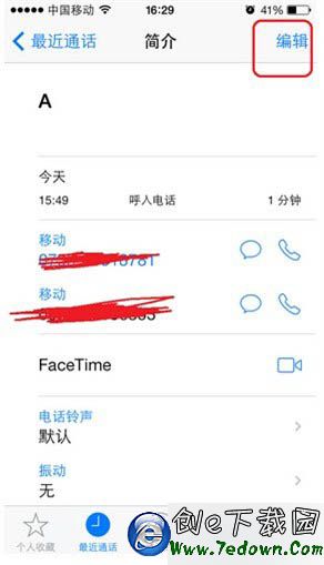 以上的步驟只是說明了對單個電話的阻止,下面我再給大家說一下如何對多個電話或短信的阻止,進入電話選項找到通訊錄中你設置的阻止號碼的名字,比如我的是A,點擊圖片右上角紅圈所示編輯選項進入。