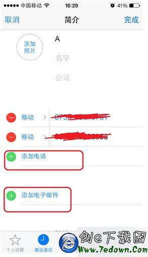 進入編輯選項後找到圖片中紅圈所示添加你想阻止的電話號碼,也就是說你創建一個聯系人名稱就行了,你把所有不想接的電話和電子郵件都添加到這一個聯系人裡,記得點擊右上角的完成並完成所有步驟。