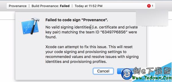 11、點擊Play運行按鈕,這時候你會看到一個“錯誤的代碼簽名”的錯誤提示,點擊“Fix Issue”修復問題以及使用你的開發者賬戶進行登錄。這裡的賬戶(Apple ID)不需要付費開發者賬戶,如果沒有的話,直接在其中創建一個就好;