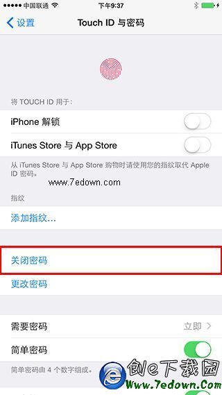 2. 越獄前務必在設備”設置”— ”Touch ID與密碼”— ”關閉密碼”,關閉鎖屏密碼。