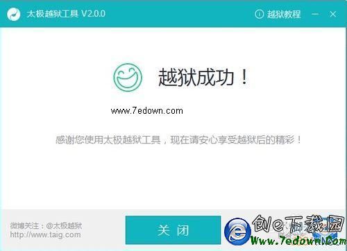 7、最後越獄成功以後,越獄工具會提示我們“越獄成功”的消息,如圖所示
