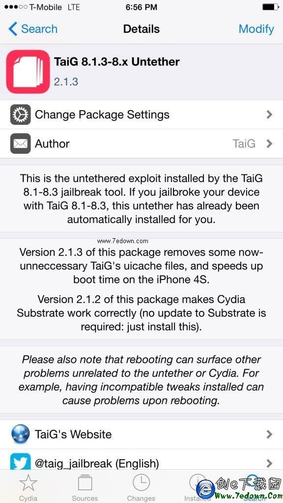 已經越獄的用戶,直接通過Cydia,添加“apt.taig.com”源,然後更新“TaiG 8.1.3-8.x Untether”插件即可。未越獄用戶請直接使用最新2.1.3版本工具進行越獄。