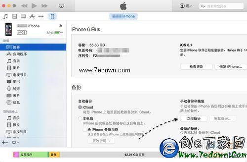 3、當然在開始操作以後,如果你的設備上有重要的數據,如照片、短信、通訊錄等,請在電腦上用 iTunes 進行備份。