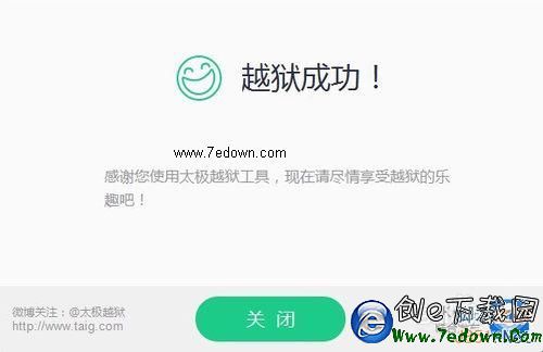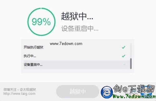 4、當恢復以後,我們再用太極越獄工具越獄的話,但可以一路順風,越獄成功了。