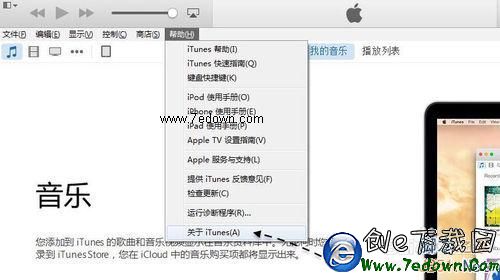 2、當前 iTunes 最新的版本為 12.1.X,問題就出在它身上。先請打開 iTunes 軟件,在菜單欄中的“幫助”中查看“關於 iTunes”,看看當前的版本是多少。