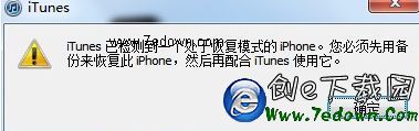 首先,無論是恢復模式還是DFU模式 手機連接iTunes後 iTunes都會有如下提示