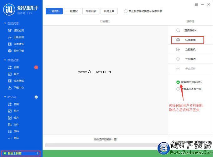 注:刷機時,請勾選“保留用戶資料刷機”,這樣可以自動讓愛思助手備份與還原數據。