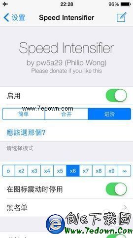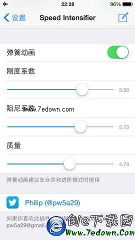 此外在插件當中還可以對於是否在圖標震動時使用加速進行選擇,用戶還可以對彈簧動畫的各種數值進行設置,而黑名單功能則讓用戶可以對個別應用進行設置。值得提醒的是,在選擇較高速率時在打開應用程序的時候會出現卡頓的情況,此時降低速率即可。目前插件在Cydia當中完全免費,且已經支持了iOS 8,感興趣的用戶都可以下載一試。