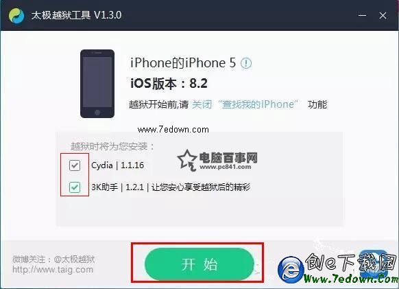 注:在越獄之後設備會默認安裝Cydia和3K助手(如果不想安裝我們可以去掉勾選)