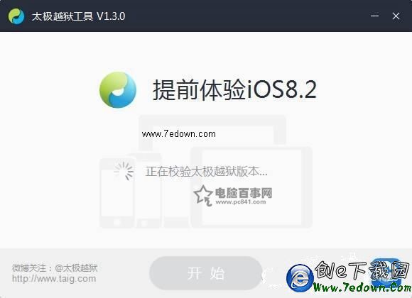 1、首先在電腦上下載完iOS8.2bata1/2完美越獄工具後,雙擊打開太極越獄工具,如下圖: