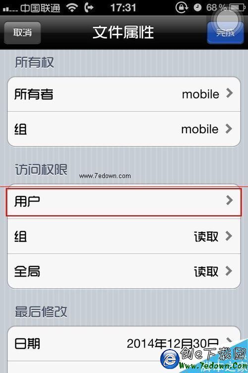 5、將寫入和讀取後面的兩個"√"取消,然後選擇左上角的"文件屬性"返回,選擇右上角的"完成",大功告成。退出後再次進入AppStore更新,則QQ更新提示會消失。