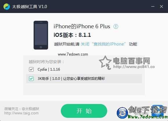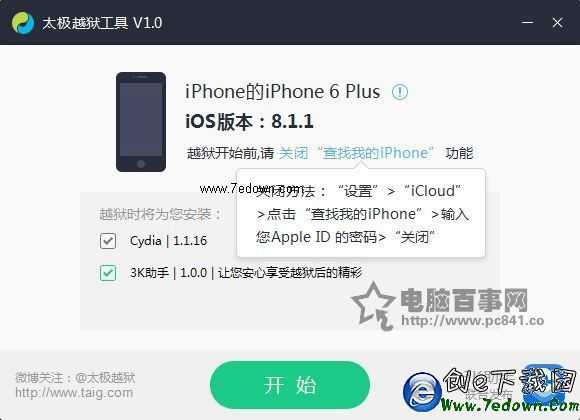 3、在電腦中下載安裝太極iOS8.1.1完美越獄工具(目前僅有Windows版);