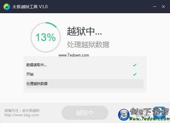 3、之後我們點擊開始越獄,接下來就是耐心的等待過程,如圖所示: