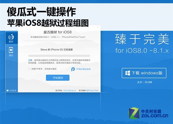 國內盤古團隊發布iOS8-8.1越獄包當天雖然又迅速將其撤下,不過之後又很快進行了更新。目前的版本為Pangu8_v1.0.1.雖然現在還沒有Cydia商店,不過已經有消息稱Cydia的作者Saurik已經在Cydia上發布了Cydia Substrate的iOS8兼容更新。估計很快盤古越獄工具也會發布集成Cydia的更新版本。