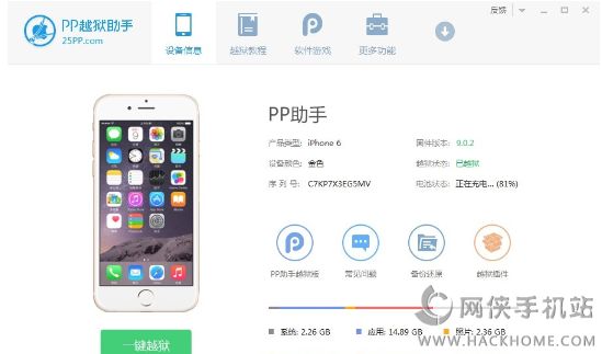 2. 識別到蘋果設備後點擊【一鍵越獄】