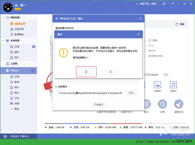 各位蘋果的果粉們好!今天雖然盤古放出了越獄工具,但是目前來說並不是很完美,需要在越獄前一定做要做好備份才行,接下來 小編就來給大家分享一下ios8越獄備份一家還原重要資料的圖文教程,希望能幫助到大家: