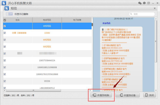 第六步、點擊【恢復到電腦】,還可以將誤刪的短信內容備份到電腦本地,方便以後查看。