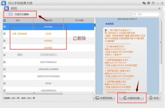 使用開心手機恢復大師恢復不小心刪除的蘋果手機短信攻略: