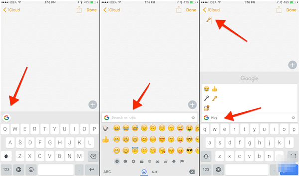 看來,谷歌在表情方面下了不少功夫。當我們使用 Gboard 輸入文字的時候,它會出現跟文字匹配的 Emoji 表情,比如鑰匙和吻等等。