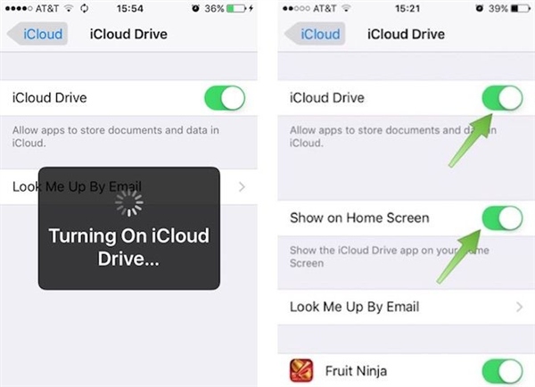 2. 確保 iCloud Drive 已經開啟,並且選擇“在主屏幕上顯示”,讓 iCloud Drive 應用圖標出現在主屏幕上。