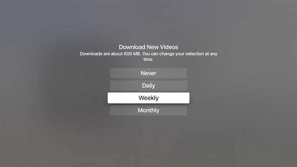5.然後你會看到“下載新視頻”,點擊改變 Apple TV 下載新視頻的頻率(從不、每天、每周或每月)