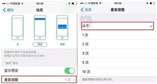 短信重復提醒的煩惱,其實這是iPhone默認的防漏接功能。寶寶如果不喜歡,可以通過“設置”--“通知”--“信息”,將“重復提醒”設置為“從不”,後面收到的短信就會只響一聲了。