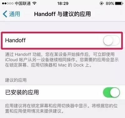 通過Handoff功能,可以立刻通過iCloud賬戶從另外一台設備上繼續相同操作,然而80%的寶寶都用不上。可以通過“設置”--“通用”--“Handoff與建議的應用”關閉。