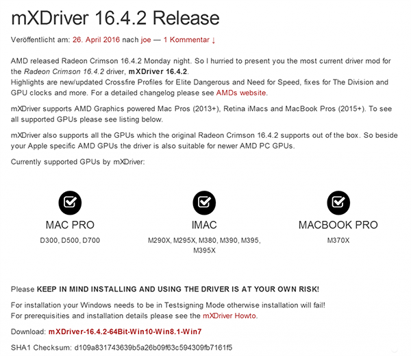 首先下載 mXDriver 16.4.2(下載地址)和 Display Driver Uninstaller V15.7.5.5(下載地址)。