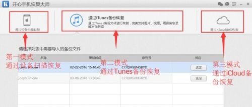 本教程是開心手機恢復大師的第一模式(通過設備掃描恢復)的使用教程。開心手機恢復大師有三大模式,分別是通過設備掃描恢復、通過iTunes備份恢復、通過iCloud備份恢復。建議大家在使用第一模式掃描手機後,再使用開心手機恢復大師的第二、第三模式,看是否能恢復更多的數據。