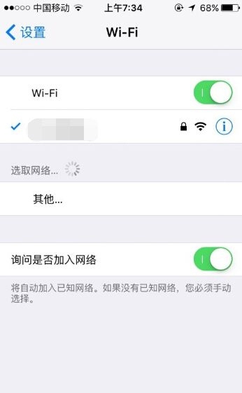 第二步:點擊 iPhone 已經連接成功的無線網絡名稱右側的感歎號按鈕,直接點擊 WiFi 名也可以。
